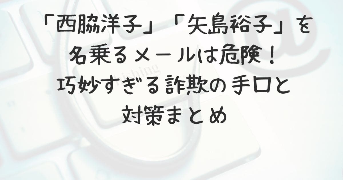 「西脇洋子」や「矢島裕子」名義で届くメールは、高確率でフィッシング詐欺を目的としています。