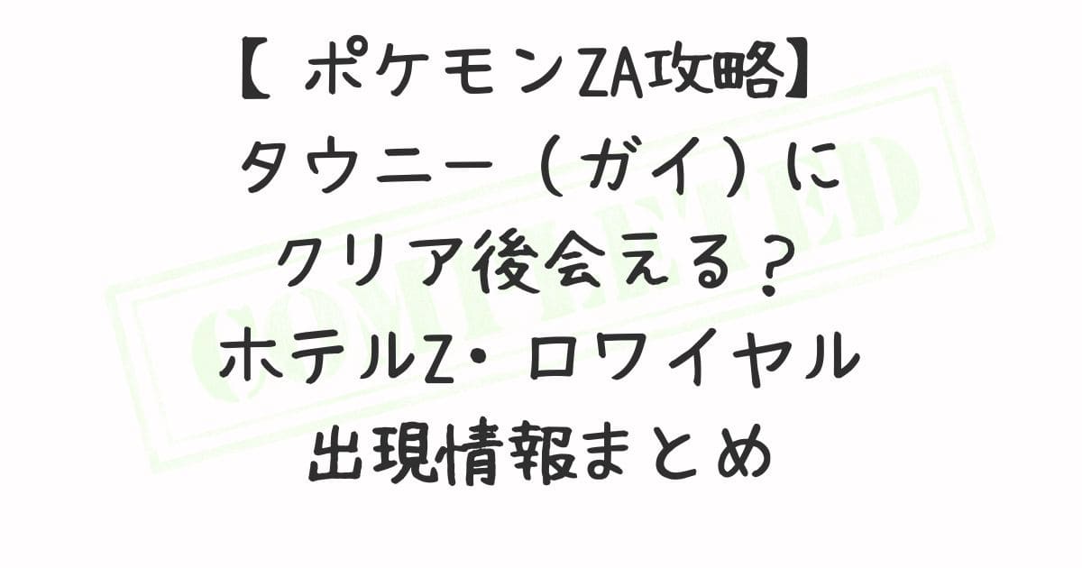 ここまで、ポケモンレジェンズZ-Aのクリア後におけるタウニー(またはガイ)の登場情報を整理してきました。