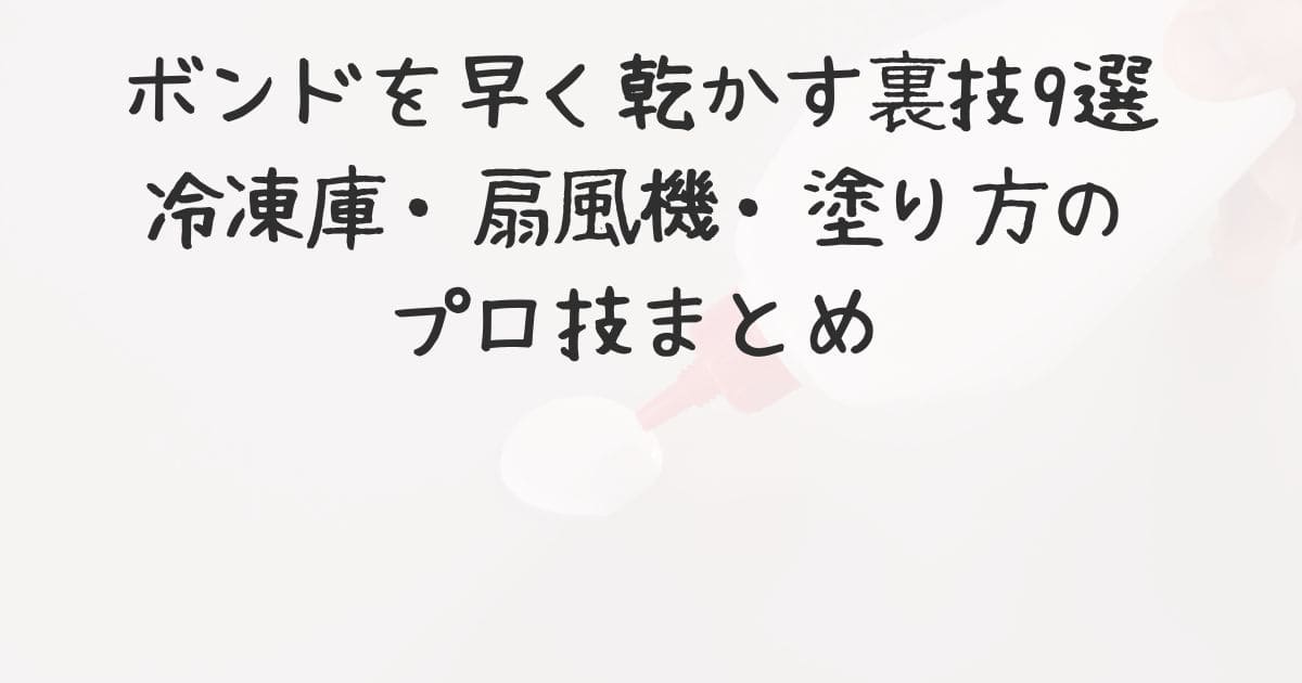 この記事では、ボンドを早く乾かすための実践的なテクニックをわかりやすく解説します。