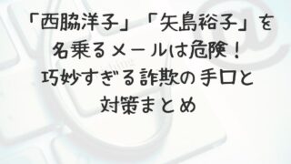 未分類 「西脇洋子」「矢島裕子」を名乗るメールは危険!巧妙すぎる詐欺の手口と対策まとめ 最近、「西脇洋子」さんや「矢島裕子」さんと名乗る人物から届くメールが増えていませんか。まるで業務連絡やプライベートな内容のように見せかけたそのメール、実は個人情報を狙うフィッシング詐欺の可能性が非常に高いです。「未請求一覧」「しゃいんめいぼ... 未分類