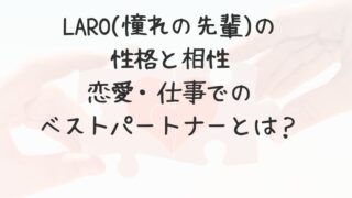 生活 LARO(憧れの先輩)の性格と相性|恋愛・仕事でのベストパートナーとは? LARO(憧れの先輩)タイプは、冷静で落ち着きがあり、頼れる存在として多くの人に憧れられる性格を持っています。しかしその一方で、感情表現が控えめであったり、相手との距離感がつかみにくかったりと、恋愛や仕事で「相性」が重要なポイントになること... 生活