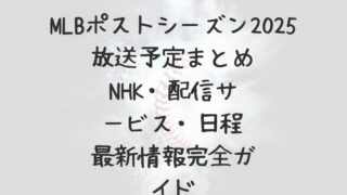スポーツ MLBポストシーズン2025放送予定まとめ|NHK・配信サービス・日程・最新情報完全ガイド いよいよ2025年のMLBポストシーズンが開幕しました。今年はロサンゼルス・ドジャースの大谷翔平選手、山本由伸選手をはじめ、日本人選手が数多く出場する歴史的なプレーオフとなっています。この記事では、「MLBポストシーズン2025はどこで見ら... スポーツ