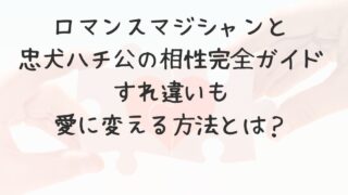 生活 ロマンスマジシャンと忠犬ハチ公の相性完全ガイド|すれ違いも愛に変える方法とは? 「性格が真逆だから合わないかも…」そんなふうに思ったことはありませんか?恋愛MBPIタイプ診断で「ロマンスマジシャン」と「忠犬ハチ公」は、まさに真反対の性質を持つタイプです。一方は刺激とときめきを求め、もう一方は安定と信頼を大切にする。でも... 生活