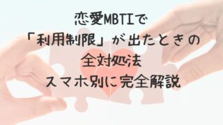 生活 恋愛MBTIで「利用制限」が出たときの全対処法|スマホ別に完全解説 話題の恋愛MBTI診断を試そうとしたら、「利用制限」と表示されて見れない…そんな経験、ありませんか?実はそれ、スマホの故障ではなく、通信環境や設定の影響で起きているケースがほとんどなんです。本記事では、「恋愛MBTI 利用制限」が表示される... 生活