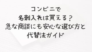 生活 コンビニで名刺入れは買える?急な商談にも安心な選び方と代替法ガイド ビジネスの現場では、名刺入れは社会人の必須アイテムです。しかし、出張や外出先で名刺入れを忘れてしまうこともありますよね。そんな時に頼りになるのが、どこにでもあるコンビニで買える名刺入れです。この記事では、ローソン・ファミリーマート・セブンイ... 生活