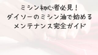 「ミシンの動きが重い…」「そろそろメンテナンスが必要かも?」そんな時に役立つのがミシン油です。中でも、ダイソーで手軽に手に入るミシン油は、価格・使いやすさ・汎用性のバランスが取れた優秀なアイテム。本記事では、ダイソーで販売されているミシン油...