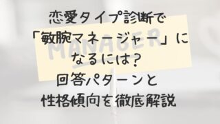 生活 恋愛タイプ診断で「敏腕マネージャー」になるには?回答パターンと性格傾向を徹底解説 「恋愛タイプ診断で敏腕マネージャーって出てみたいけど、自分には無理かも…」そんなふうに感じたことはありませんか?このタイプは、恋人を支える力や冷静な判断力に優れていて、恋愛において安心感を与える存在として高く評価されがちです。本記事では、敏... 生活