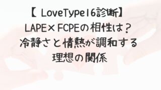 生活 【LoveType16診断】LAPE×FCPEの相性は?冷静さと情熱が調和する理想の関係 Lovetype16診断で「LAPE(キャプテンライオン)とFCPE(忠犬ハチ公)の相性ってどうなの?」と気になっている方へ。このふたりは一見正反対のようですが、実は冷静さと情熱が絶妙にかみ合う理想的なカップルです。LAPEは落ち着きとリー... 生活