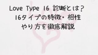 生活 Love Type 16 診断とは?16タイプの特徴・相性・やり方を徹底解説 SNSで話題のLove Type 16 診断をご存じですか?MBTIをベースにした恋愛版診断で、16種類のキャラクターに分かれるユニークなテストです。「恋愛モンスター」や「ちゃっかりうさぎ」といった可愛い診断結果がシェアできるため、XやIn... 生活