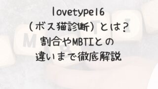 生活 lovetype16(ボス猫診断)とは?割合やMBTIとの違いまで徹底解説 SNSを中心に大バズりしている無料恋愛診断「lovetype16(ボス猫診断)」をご存じですか?プロフィールやストーリーで診断結果をシェアする人が急増しており、「MBTIより当たる」と話題になっています。本記事では、lovetype16がど... 生活